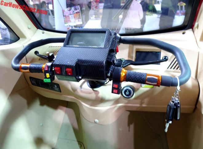 Однак дивує цей автомобіль не тільки назвою. Не менше вражає його вузька архітектура кузова. Хоча, з іншого боку, тут немає нічого дивного, якщо врахувати, що машина створена на базі мопеда. Габарити EV-моделі становлять 2160 х 1270 х 1600 мм.