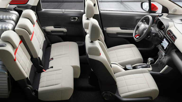 Задні сидіння Citroen C3 Aicross 2018 оснащені горизонтальним регулюванням. Якщо скласти крісла, то об’єм багажника зросте з 410 до 1289 л.