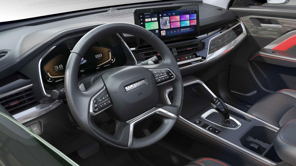 На корме можно выделить модернизированные фары, объединенные тонкой световой полосой, и иную пятую дверь, на которой появилась ниша для номерного знака. Силуэт обновленного Haval H6 стал более динамичным благодаря восходящей линии бокового остекления и выштамповкам на дверях. Салон кроссовера стал современнее. Большой 12,3-дюймовый экран мультимедиа теперь располагается по центру передней панели над дефлекторами. На смену традиционной ручке КПП пришел джойстик, а запуск двигателя осуществляется при помощи кнопки. Эти органы управления расположены на центральной консоли. Топовым комплектациям достались цифровая приборка и адаптивный круиз-контроль.