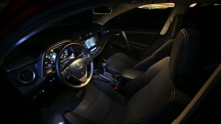 Салон Тойота РАВ4 оздоблено більш стійкою тканиною, з’явилися нові килимки і накладки на порогах з написами Adventure. У багажнику встановлено розетку на 120 вольт. Оснащення поповнили обігрів керма, передніх сидінь і зони щіток двірників.