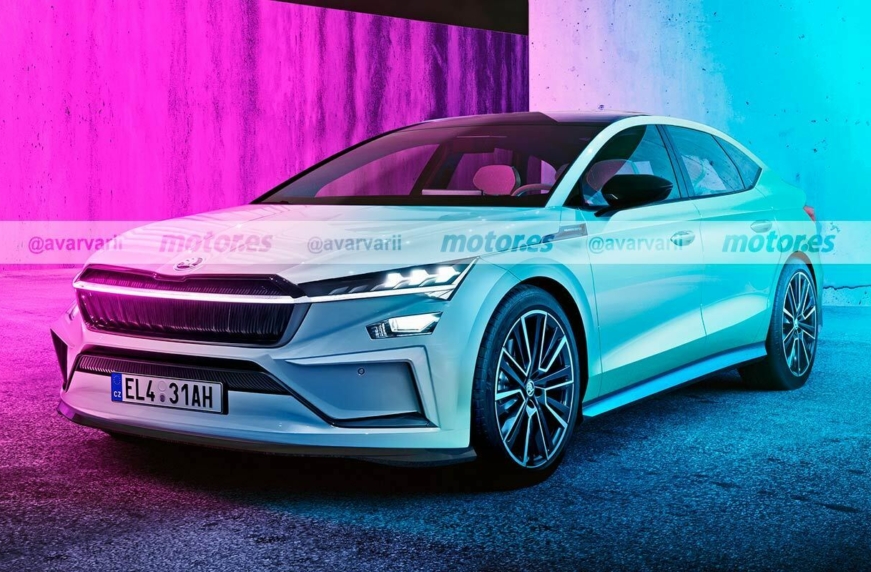 На підставі отриманих від виробника даних журналісти видання Motor.es створили рендерне зображення майбутньої новинки. Електричний седан Шкода отримає спортивний силует і агресивну передню частину з вузькими фарами і світлодіодною смугою. Довгий капот, завалене назад вітрове скло і великі колеса роблять модель неймовірно динамічною.