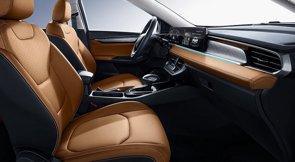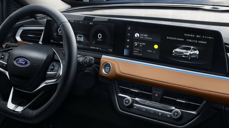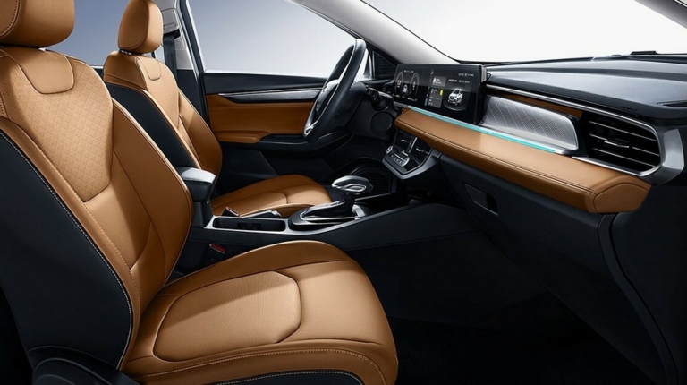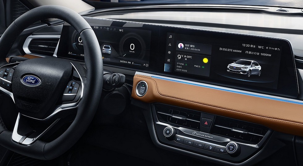 Салон у седана полностью новый, начиная от рулевого колеса и заканчивая дверными картами. Изменены селектор коробки передач и блок управления климат-контролем. Но основное новшество – огромный дисплей, объединивший в одно целое цифровую панель приборов и мультимедийную систему (оба экрана диагональю 10,25 дюйма). Выглядит очень эффектно и современно. В стандартной комплектации заявлены шесть подушек безопасности, камера заднего вида и круиз-контроль.