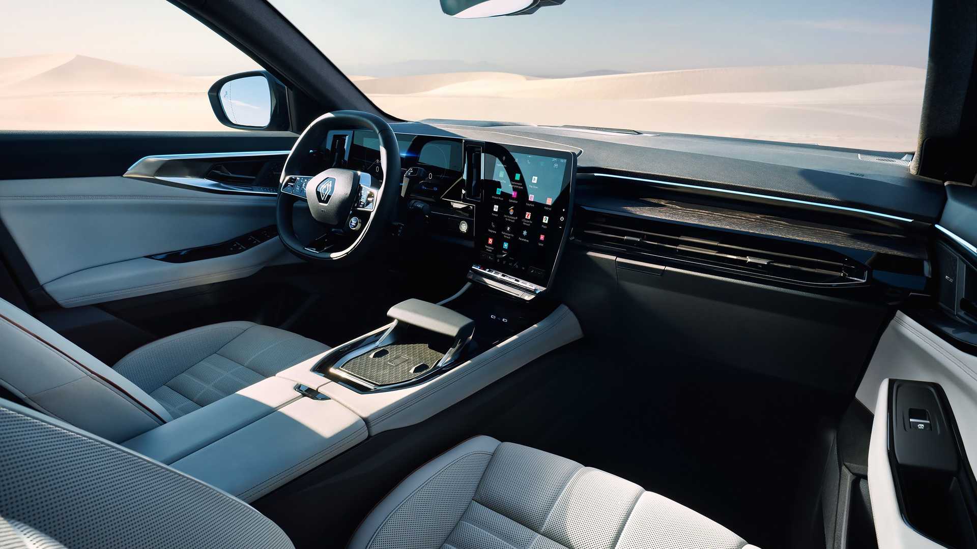 Renault Espace доступний у трьох комплектаціях: Techno, Iconic та Esprit Alpine. Базова комплектація Techno передбачає 12,3-дюймову цифрову панель приладів, 12-дюймовий сенсорний екран, бездротову зарядку, дві розетки на 12 В та по два порти USB-C в кожному ряду. За доплату запропоновано проєкційний екран діагоналлю 9,3 дюйми.