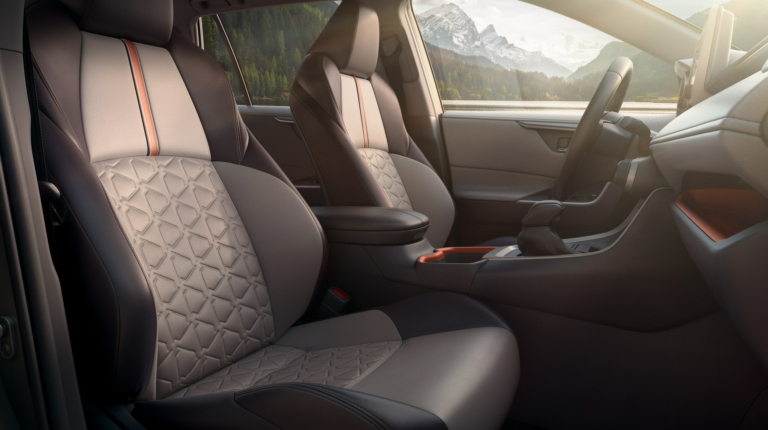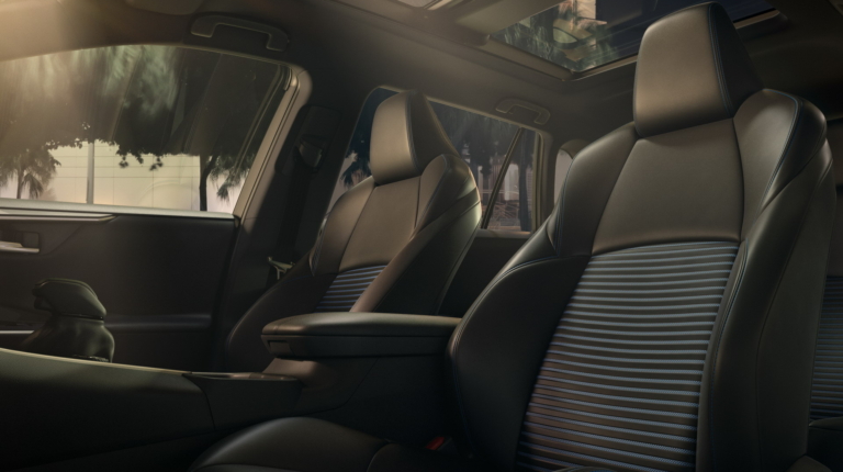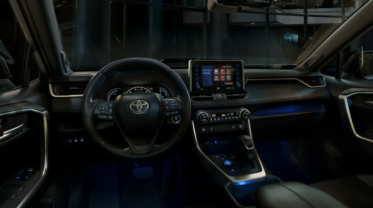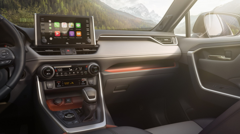 “Боевой” дух Toyota RAV4 2019 продолжается и в салоне. Здесь также в основе стремительные линии, которые гармонично сочетаются с новыми клавишами и переключателями. По центру передней панели – 7-дюймовый (8-дюймовый – опционно) экран новой мультимедийной системы Entune 3.0 с функцией Apple CarPlay, сервисом Amazon Alexa и точкой доступа Wi Fi.