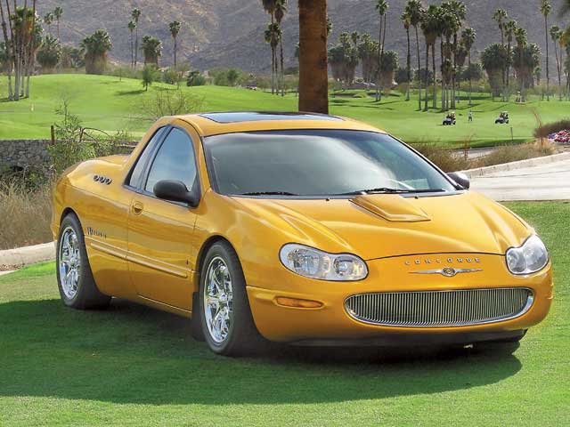 Жизнь JX Coupe началась в 1999 году. Тогда это был обычный 5-местный семейный седан Chrysler Concorde с четырьмя дверьми, переднеприводной трансмиссией и 235-сильным V6 под капотом. В конце прошлого года на его базе решили создать двухместный роскошный пикап. Взяв в руки «болгарки», мастера из DiMora Designs воспользовались лозунгом древних – «отсечь все лишнее». Так седан лишился двух задних дверей и стал ниже на несколько дюймов. Чтобы придать облику задней части больше агрессии, вместо штатного глушителя установили выхлопную систему от Chevrolet Camaro Z28 с двумя хромированными патрубками. Переднюю часть машины украсила новая решетка радиатора ручной работы, а на задних крыльях появились декоративные хромированные овалы а-ля Buick Roadmaster. Пикап-купе окрашен в эксклюзивный цвет Sunrise Pearl, который меняет свой оттенок при разном освещении, а для отделки салона использована высококачественная кожа.