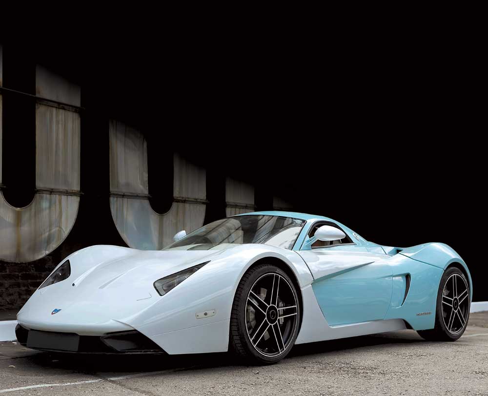 Наши северные соседи буквально шокировали мировую автомобильную общественность, создав под именем Marussia сразу два среднемоторных суперкара – серийный В1 и концептуальный В2 с более футуристическим дизайном. Обе машины построены на основе универсальной модульной платформы, на которую, по сути, можно «навешивать» практически любую кузовную «скорлупу» – вплоть до кроссовера и седана. Данная концепция разительно напоминает фирменную технологию VVA (Versatile Vehicle Architecture) легендарной британской компании Lotus. Прочная и очень жесткая конструкция представляет собой комбинацию «клетки» из стальных труб и алюминиево-пенопластового полумонокока. К ней крепятся независимые подвески формульного типа на двойных поперечных А-образных рычагах («пуш-род»). Причем кузов В1 может изготавливаться не только из стеклопластика или карбона, но и менее известного в автомобильном мире базальтового волокна. В качестве силового агрегата для Marussia B1 используется атмосферный 3,5-литровый мотор Nissan VQ35DE (240 л. с.), а на В2 установлено 3,6-литровое «сердце» GM, доведенное инженерами фирмы Cosworth до 420 л. с. Благодаря малой массе купе В1 способно разгоняться от 0 до 100 км/ч менее чем за 5 секунд, а более совершенное и легкое В2, по словам создателей, – всего за 3,2 с.
