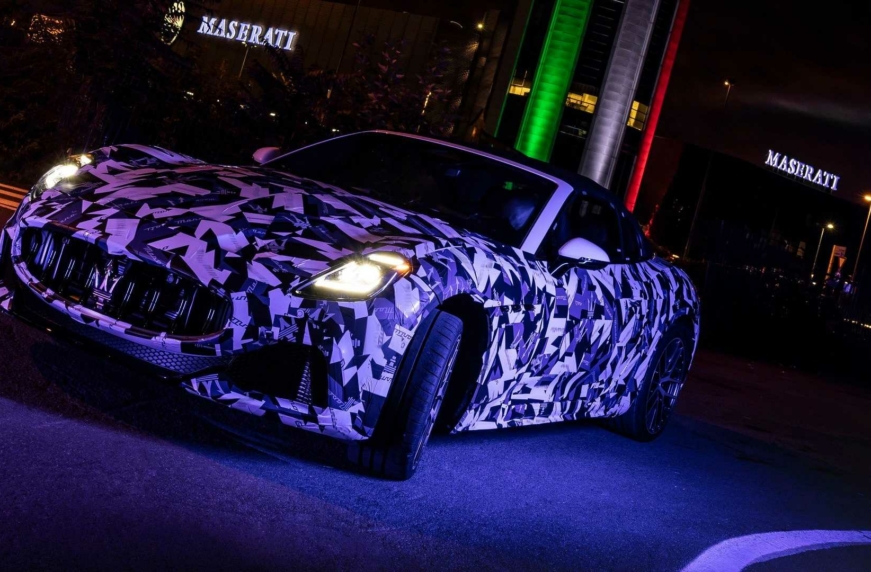 Maserati опублікувала серію знімків закамуфльованого прототипу GranCabrio із дорожніх тестів у Модені. Тим самим італійська марка підтвердила чутки про початок їздових випробувань кабріолету.