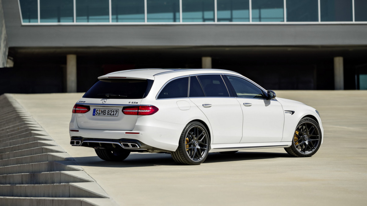 Відрізнити новий Mercedes-E63 AMG Estate можна за аеродинамічним обвісом, особливою решіткою радіатора і величезним повітрозабірником у бампері. Крім того, розширено колісні арки, а ззаду помітні чотири широких вихлопних труби. Початкова версія отримала 19-дюймові литі диски, а E63 S – 20-дюймові.