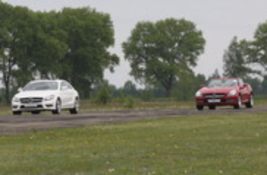 17 мая на аэродроме «Аэропракт» под Киевом состоялась «лётная» презентация автомобилей Mercedes-Benz CLS и SLK. Таким образом организаторы – генеральное представительство автомобилей Mercedes-Benz в Украине, компания «АвтоКапитал», входящая в группу компаний «УкрАВТО», хотели продемонстрировать, что новые модели Mercedes-Benz не уступает пилотажным самолетам в аэродинамике и курсовой устойчивости. Вначале презентации лучшие пилоты Украины на спортивных самолетах ЯК-42 показали чудеса высшего пилотажа – мертвые петли, бочки, штопоры, перевернутый полет, а также уникальную в своем роде «абракадарбру».
