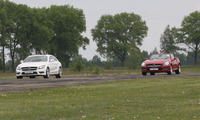 Затем водители-испытатели на новых Mercedes-Benz CLS и SLK продемонстрировали возможности машин на взлетной полосе аэродрома. Желающие могли прокатиться на вертолете.