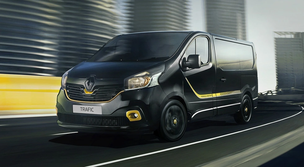 Як і боліди Рено, комерційний автомобіль пофарбований у чорний колір з яскравими жовтими вставками. Під стать такому окрасу – і чорні 17-дюймові диски. Особливий Renault Trafic доступний у вантажному чи пасажирському виконанні, з короткою або подовженою колісною базою.