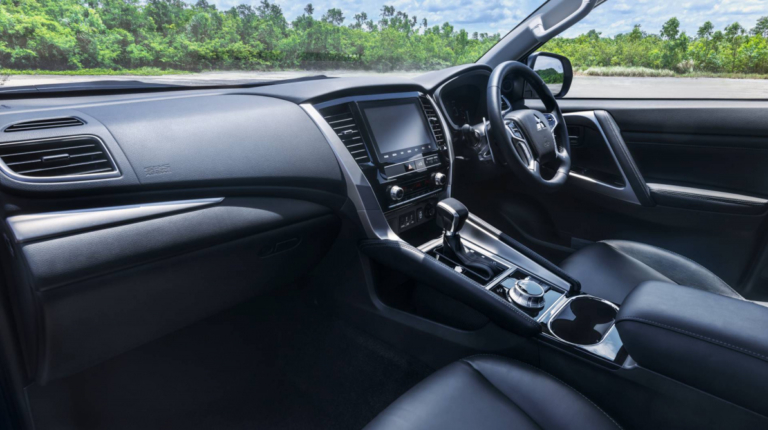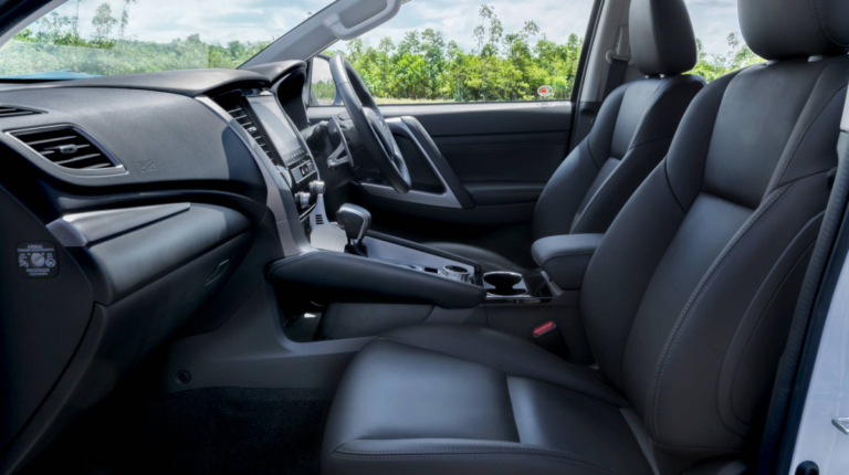 Салон Mitsubishi Pajero Sport 2020 також відрізняється від дореформеної версії – кросовер отримав 8-дюймову цифрову приладову панель, оновлений сенсорний екран того ж розміру інформаційно-розважальної системи та систему Mitsubishi Remote Control, яка дозволяє водієві відчиняти або зачиняти двері за допомогою свого смартфона, зокрема двері багажника. Крім того, у автомобіля покращилися матеріали оздоблення, а у задніх пасажирів з’явилася своя розетка поруч з портом USB.