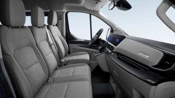 Зате салон у «китайського» Transit Custom повністю новий. Колишню передню панель замінили новою, більш сучасною та дорогою на вигляд. Також варто відзначити блок із двох дисплеїв діагоналлю 12,3 дюйма: панель приладів та мультимедіа. Працює «мультимедійка» на операційній системі JMC Dolphin, адаптованій під китайський ринок та місцеві сервіси. У максимальній комплектації — 13 систем безпеки та асистентів водія. Серед них і автопілот другого рівня автономності.