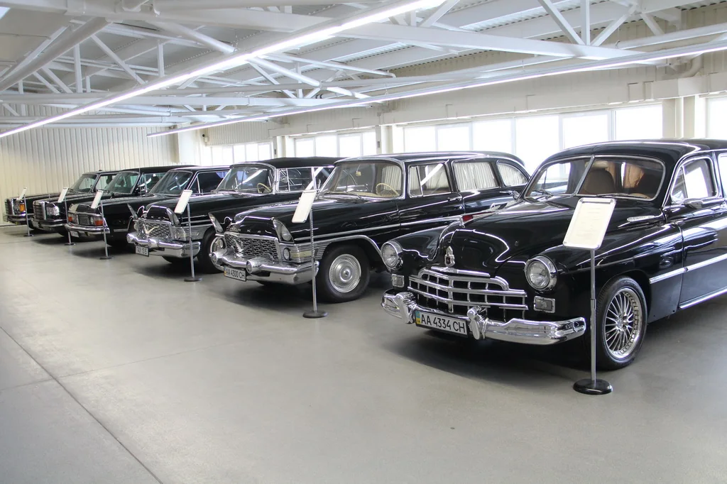 Вторая часть экспозиции включает правительственные лимузины, мотоциклы , «Волынянки» и военные грузовики.