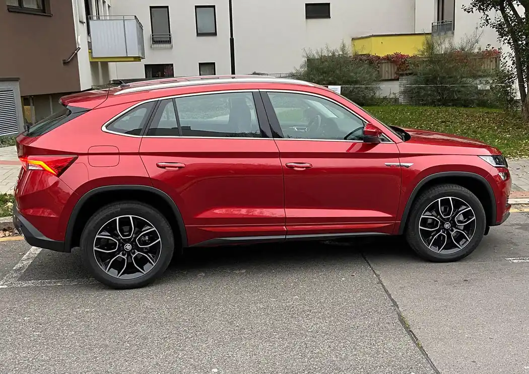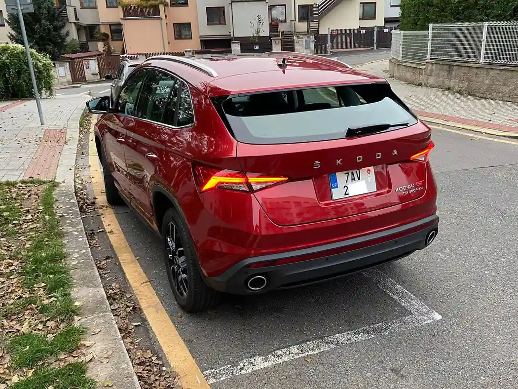 Цього разу в центрі Праги спіймали купеподібний кросовер Шкода Кодіак червоного кольору — вже з чеськими реєстраційними номерами. Шильдик TSI 380 4x4 на кормі показує, що все найкраще, що може запропонувати Kodiaq GT, перебуває під капотом. Зокрема, 2,0-літровий TSI потужністю 220 к.с. і 380 Нм крутильного моменту. Працює двигун у зв'язці з семиступінчастим роботом і повним приводом. З місця до 100 км/год автомобіль розганяється за 8 с. Максимальна швидкість — 220 км/год.