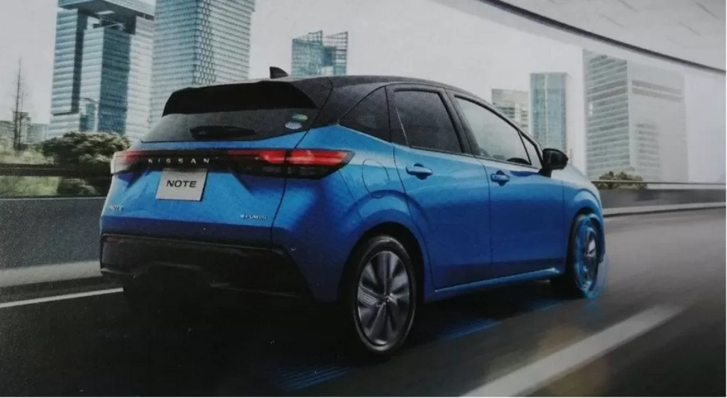 Зображений на листівці новий Note зовні перегукується з електричним кросовером Nissan Ariya. Він отримав схожу решітку радіатора і головну оптику, які візуально об'єднані декоративними елементами у вигляді бумерангу. Також став довшим капот моделі і збільшився нахил лобового скла. У задній частині машини можна побачити нові фари, які тепер горизонтальні і мають у своєму складі два блоки. До того ж збільшилися в розмірах багажні двері і з'явився напис з назвою бренду.