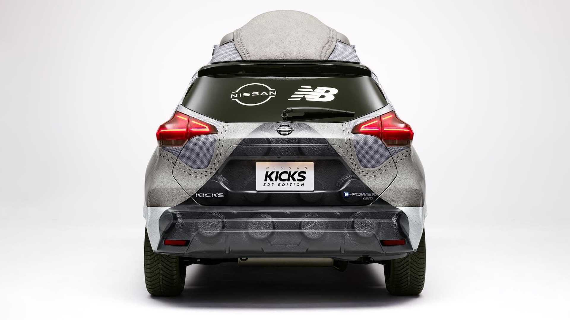 Образ кросівки New Balance 327 приміряв повнопривідний Nissan Kicks e-Power. Кузов кросовера «запакували» у сіру замшу. У нижній частині з’явилася біла смуга, яка повторює підошву кросівок. На даху — накладка у вигляді язичка із білим шнурівкою, але починається вона ще на капоті. На правій стороні кросовера видно логотип New Balance, а на лівому — величезний логотип Nissan Kicks 327 Edition.