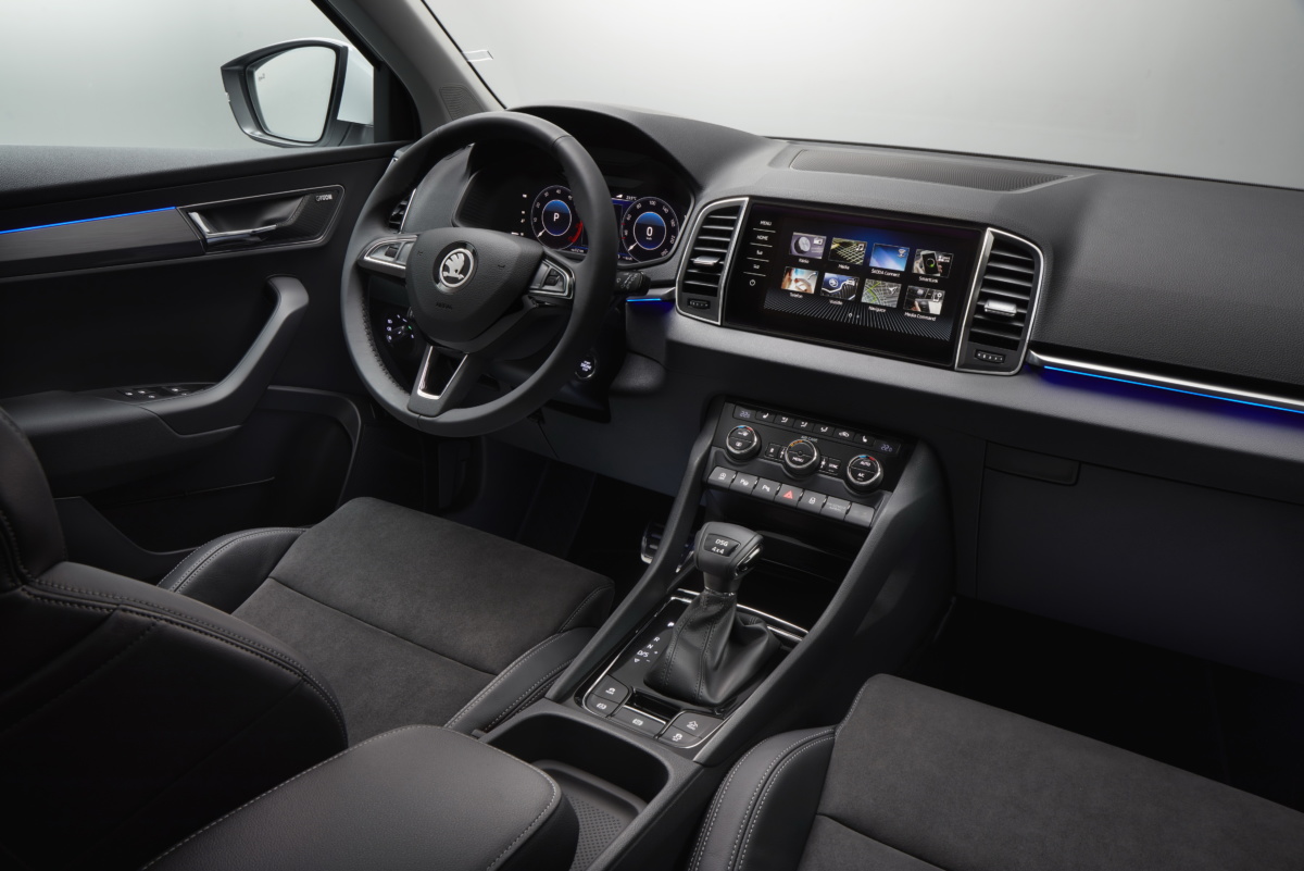 Внутри Karoq может удивить своего владельца не только простором и светодиодной окружающей подсветкой, но и множеством практичных решений Simply Clever. Кроме того, внимание привлекает медиацентр с удачно вписанным в интерьер сенсорным экраном с максимальной диагональю 9,2 дюйма и технологией SmartLink+, с помощью которой можно легко подключить к системе практически любой смартфон.