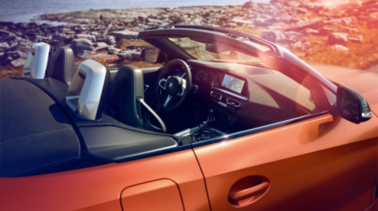 В интерьере BMW Z4 2019 также видны отсылки к «восьмерке», с дисплеем мультимедийной системы, венчающим приборную панель, и решетками воздуховодов особого дизайна.