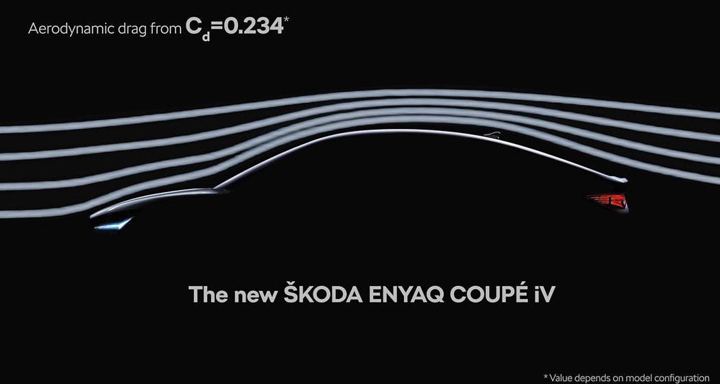 Також Skoda опублікувала кілька тизерів, які розкривають деякі особливості новинки. З огляду на них, крос-купе обіцяна передня панель Crystal Face з підсвічуванням зі 131 світлодіода. Однак вона буде доступна тільки опційно. У базовій версії модель буде поставлятися з матричними фарами. Відомо, що в довжину Enyaq Coupе досягає 4653 мм, що на 4 мм більше, ніж класичний Enyaq. Висота збільшилася на 1 мм і становить 1617. Ширина і колісна база залишилися колишніми — 1879 і 2765 мм відповідно.