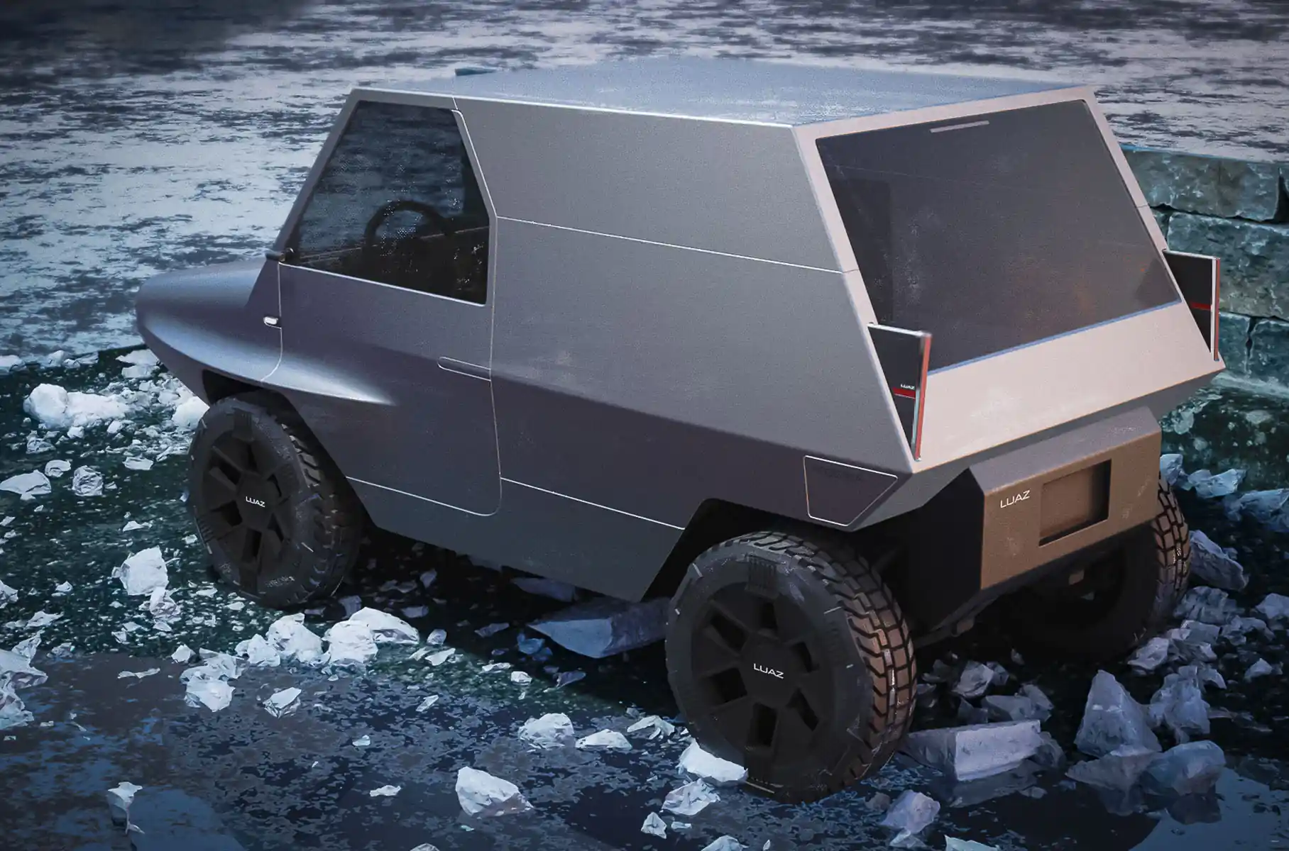 Машина отримала витягнуту передню частину, світлодіодну оптику, приховані дверні ручки, камери замість дзеркал заднього виду і аеродинамічні колеса, взуті в "зубасті" шини. На задніх крилах видно лючок, за яким ховається роз'єм для зарядки. Тобто новий ЛуАЗ "Волинь" став електромобілем, що досить несподівано. Родзинкою проекту стали складані задні ліхтарі.