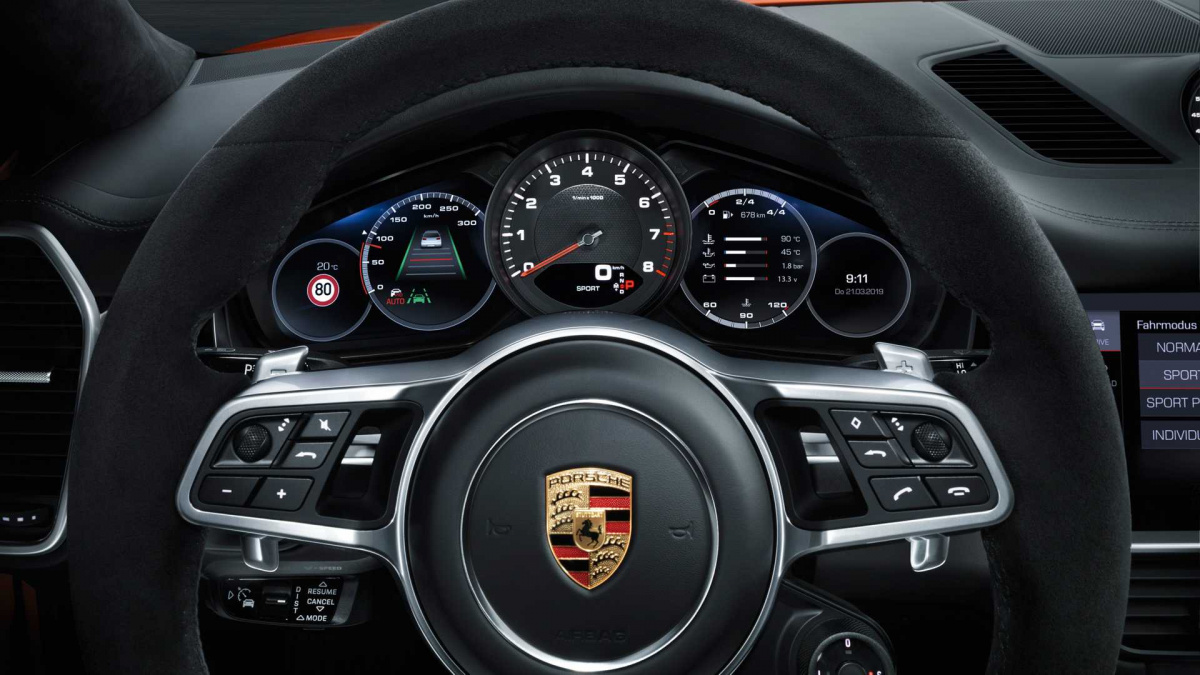 Ну а если захочется дополнительной спортивности и динамики, в новый Кайенн Купе есть возможность установить (не бесплатно, конечно) динамическое управление шасси, систему векторизации крутящего момента, карбон-керамические тормоза и спортивный выхлоп.