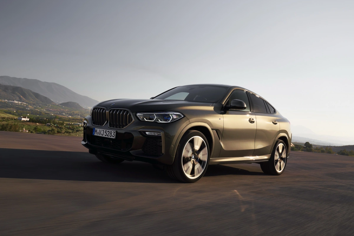 Зовні BMW X6 M50i виділяється переднім бампером з великим повітрозабірником, дифузором ззаду, пофарбованими у колір Сірий Церій зовнішніми дзеркалами, повітрозабірниками, позначеннями моделі і вихлопними патрубками. У салоні чорні спортивні сидіння з обробкою Vernasca і спортивне шкіряне M кермо.