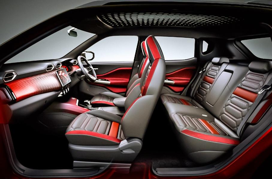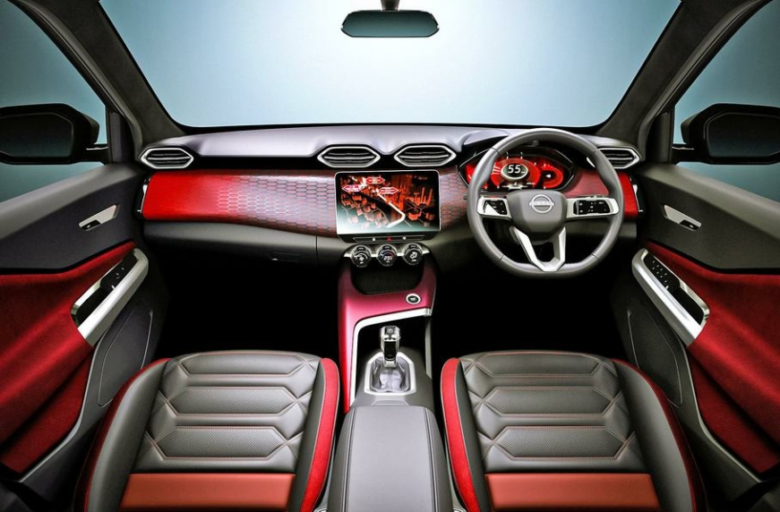 Цього разу прес-служба опублікувала фото салону Nissan Magnite, оформленого в чорно-бордовій гамі. Основний мотив інтер’єру — шестикутники. Вони вистрочені на центральній частині сидінь, аналогічний орнамент прикрашає нижню частину передньої панелі. Шестикутної форми дизайнери надали дефлекторам повітропроводів і цифровій приладовій панелі. Також на фото видно дисплей мультимедійної системи діагоналлю 8.0 дюймів. Відомо, що Магніт стандартно укомплектують круїз-контролем і камерами кругового огляду.