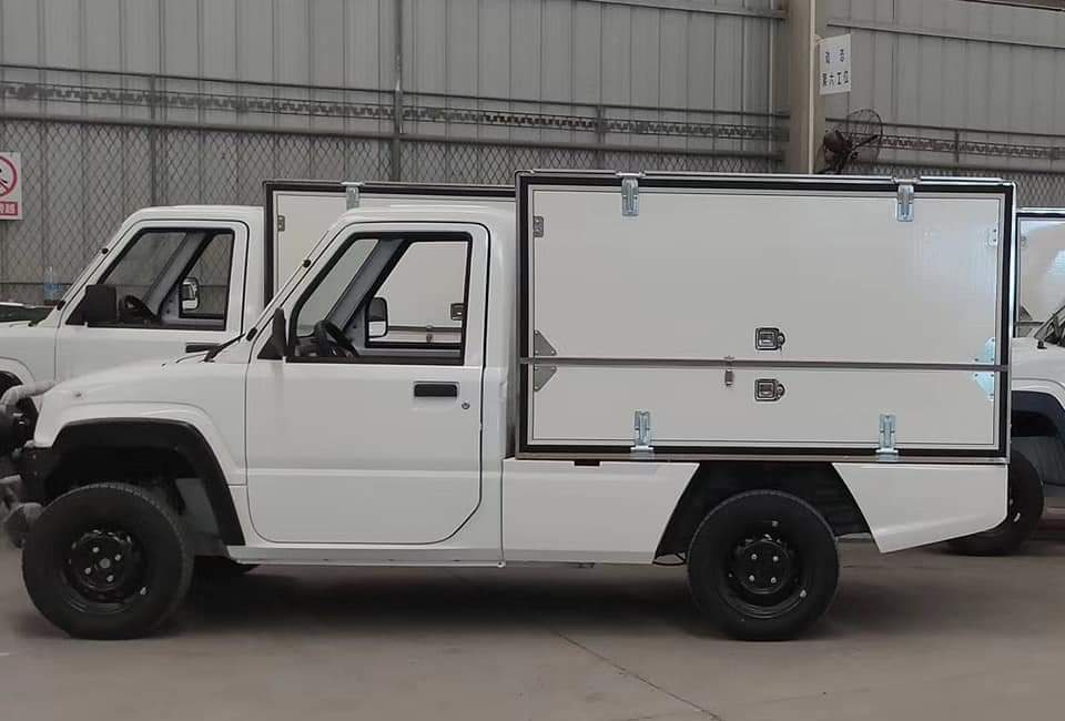 Електромобіль нового українського бренду LUAZ Motors, який наробив багато галасу в Інтернеті, продовжує дивувати. Днями з’явилися перші фотографії цього невеликого пікапа, який перетворили на розвізний фургон. Відкидні борти були демонтовані, а на вантажну платформу поставлений кузов-фургон від українського виробника – компанії «Автобан Трейлерз UA». Ця фірма з Хмельницького спеціалізується на виготовленні різних надбудов для комерційних автомобілів, у тому числі зі склопластику.