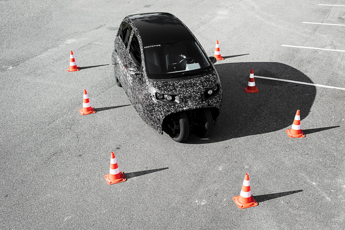 Компактний Spiri дуже вузький, але може взяти на борт чотирьох людей. Новий електромобіль важить лише 449 кг. У нього відсутня внутрішнє оздоблення, а кузовні панелі не пофарбовані.