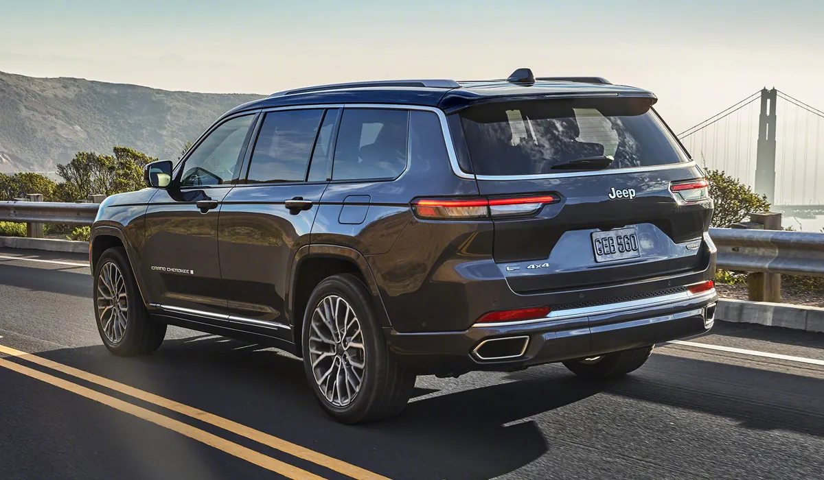 Новый Jeep Grand Cherokee 2022 переехал на платформу Giorgio от Alfa Romeo. Габаритная длина внедорожника выросла до 5204 мм (+384 мм), колесная база – до 3091 мм (+175 мм). Ширина и высота остались прежними – 1963 и 1816 мм соответственно. 20-дюймовые колесные диски заменили 21-дюймовыми.