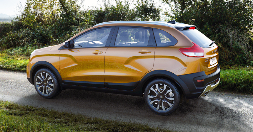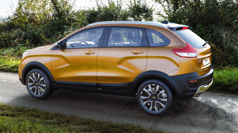 Цікаво також те, що профіль, бічна лінія скління і характерні виштамповки над колісними арками підозріло навівають образ Lada XRay. Яскравий помаранчевий колір тільки посилює враження, подивіться самі.