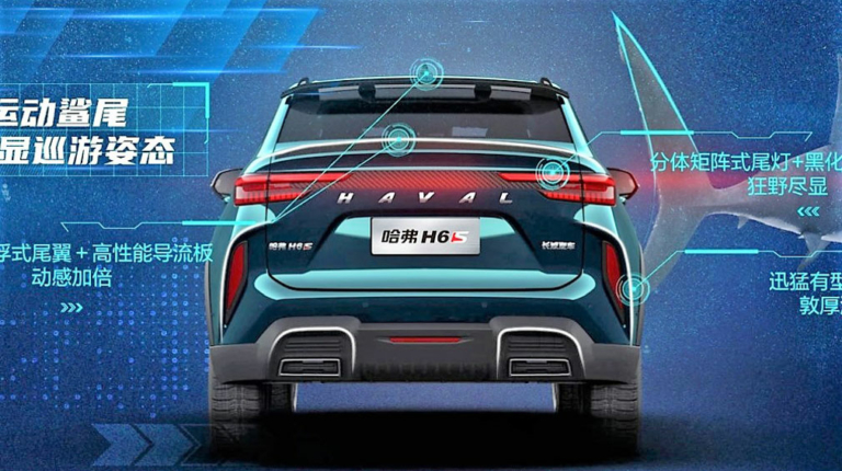 Серед інших особливостей — два спойлери, антена “акулячий плавець”, великі колеса і темний пластиковий обвіс по периметру кузова. Зображень салону немає, але, очікується, що він повторить донорський Haval H6. Головною відмінністю стануть спортивні крісла з розвиненою бічною підтримкою.