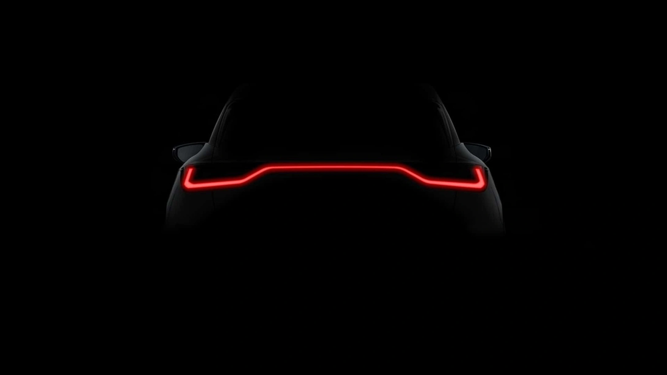На одному з них зображена передня частина кузова з фігурним капотом, краплеподібною оптикою та сітчастими гратами радіатора. На другому видно лише загальні обриси задньої частини з розширеними колісними арками та смужкою світодіодів на всю ширину кузова.