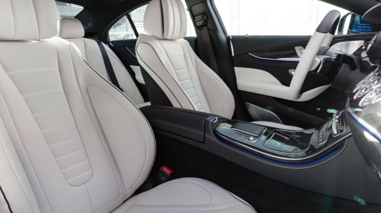 Салон Mercedes CLS 2022 модельного года подкорректировали незначительно. В оснащение включили новое рулевое колесо с емкостными датчиками, которые определяют, держится ли водитель за него. Данная система необходима для корректной работы комплекса полуавтономного вождения, который входит в стандартный пакет. Автомобиль получил новые варианты отделки и декора. Великолепная двухцветная кожа Nappa Designo (красно-черная, коричнево-черная, бело-черная, сине-черная) сочетается со шпоном из ореха с открытыми порами и серым глянцевым деревом.