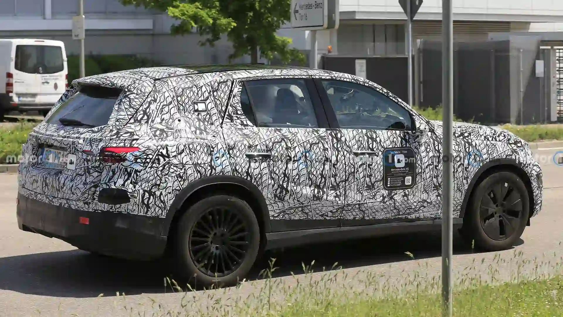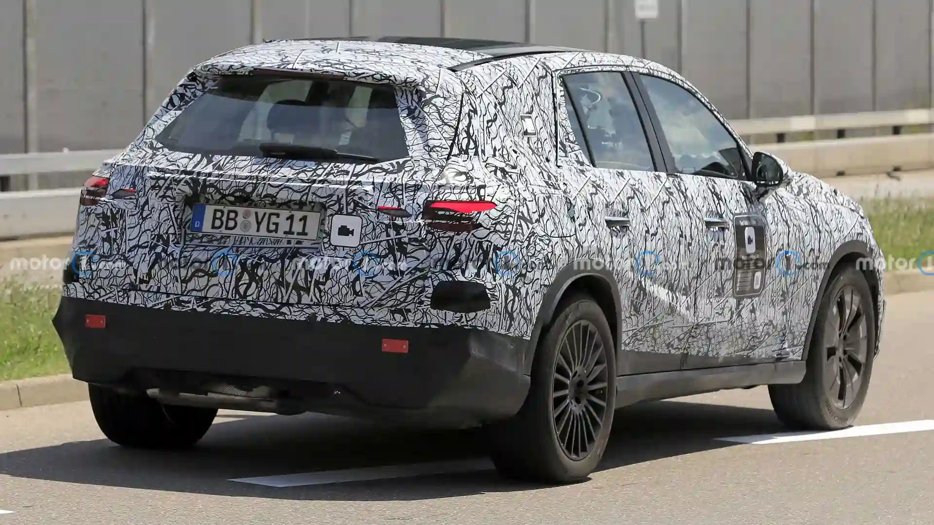 Судя по фото, кроссовер Мерседес получит внушительного размера решетку, к которой вплотную подходят стреловидные передние фары. Тоньше и меньше, чем у текущего GLC, выглядят и задние фонари.