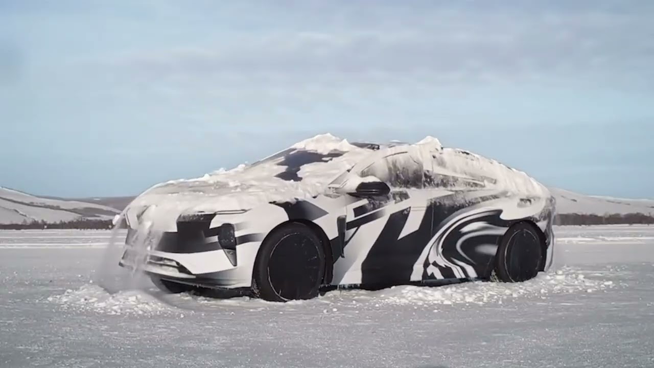 У головній ролі знявся справжній прототип серійного електроседана. В одному ролику він демонструє свої навички струшування снігу та льоду з кузова без будь-якого втручання людини.