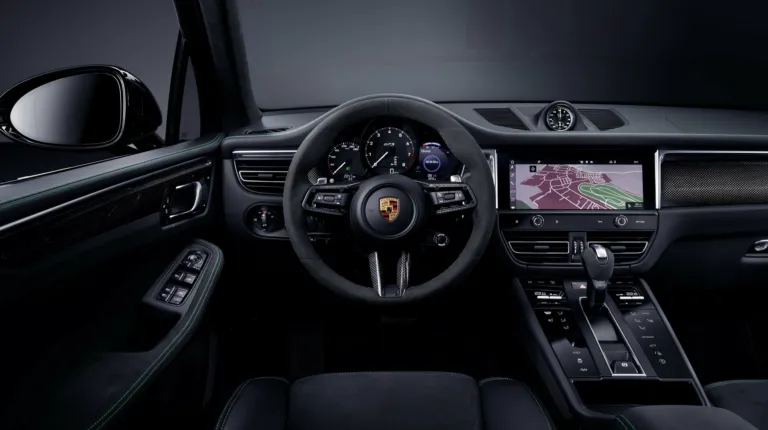 У салоні Porshe Macan 2022 з’явився аналоговий годинник, який тепер доступний у стандартній комплектації. Деякі перемикачі на центральній консолі стали сенсорними. Окремо варто відзначити появу керма GT Sport від Porsche 911.