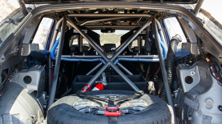 Зі змін у салоні варто відзначити каркас безпеки, перегонові ковші і додаткову сигналізацію, завдяки якій екіпаж зможе контролювати температуру акумуляторів. При цьому сам салон став простіше. Зник навіть кондиціонер, хоча під час заїзду температура за бортом становитиме не менше за +35 C. Зовнішніми і внутрішніми змінами електрокара займалися команди Tanner Foust Racing і Rhys Millen Racing.