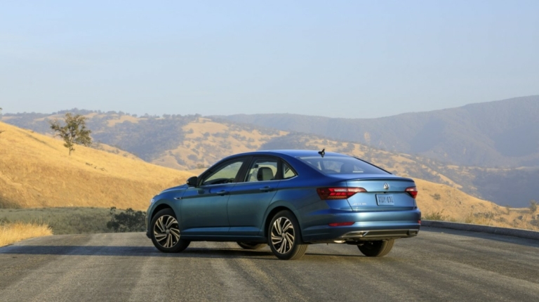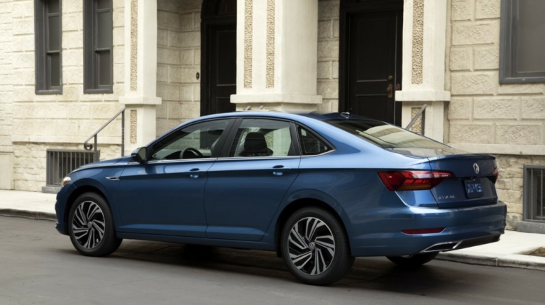 В профиль и сзади Volkswagen Jetta сохранил узнаваемый облик, а вот передняя часть и “корма” – полностью новые. Седан получил массивную хромированную радиаторную решетку и более “злую” оптику, причем светодиодные фары идут уже по умолчанию. Кроме этого, на кузове появилось острые линии. Коэффициент лобового сопротивления был снижен почти на 10% – до 0,27.