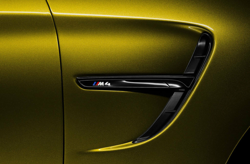 Обновленные «жабры», характерные для всех BMW M, подчеркивают спортивный характер автомобиля. Они также выполняют практическую функцию: в «жабрах» M4 Купе расположены аэродинамические воздуховоды, которые вместе с воздушной завесой в переднем фартуке обеспечивают обдув колесных арок и улучшают аэродинамику. Выразительный облик автомобиля формируют эксклюзивные двухцветные 20-дюймовые легкосплавные диски M с традиционными сдвоенными спицами. Карбоно-керамические тормозные диски M располагаются за пятью парами отполированных снаружи тонких спиц.