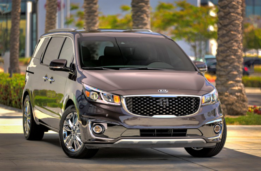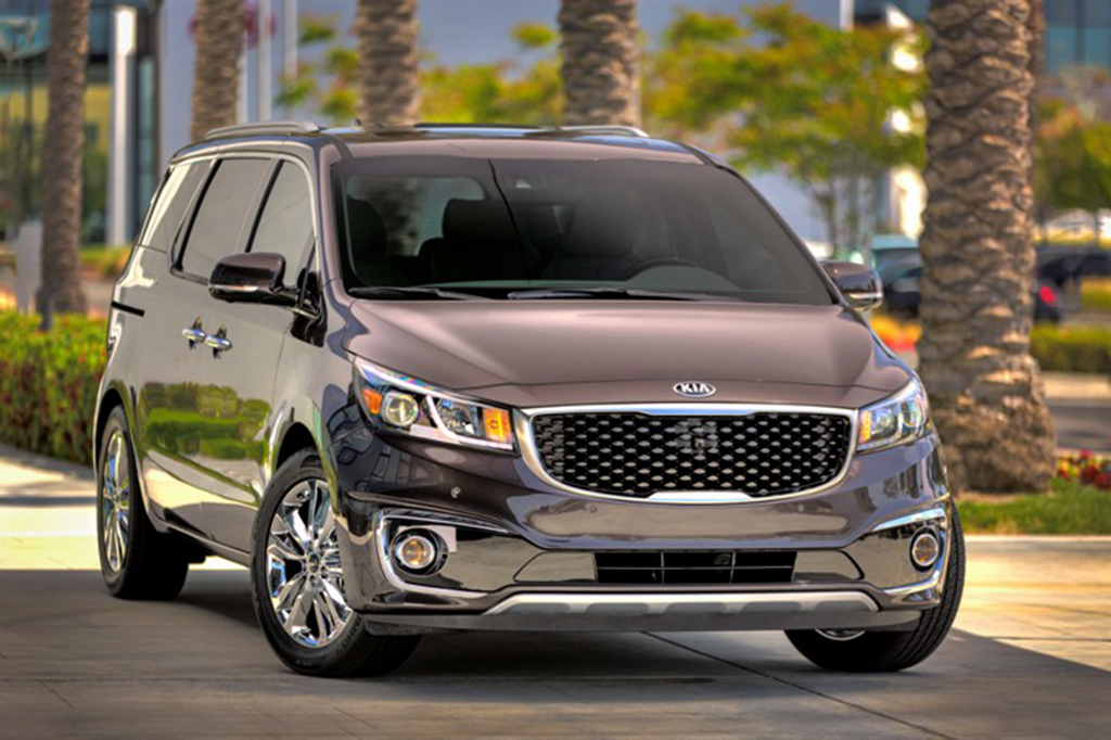 Это уже третья попытка Kia вторгнуться на рынок семейных машин США. Машина с восьмью местами в салоне не выглядит скучным автобусом. Снаружи в дизайне есть такие выразительные элементы, как большая решетка радиатора в хромовой окантовке, бумеранги таких же блестящих вставок вокруг противотуманок. Чтобы длинный профиль машины не выглядел излишне массивным, его сделали динамичнее за счет ступеньки в боковом остеклении. Одним словом, глава дизайнеров Kia Питер Шраер здорово постарался.