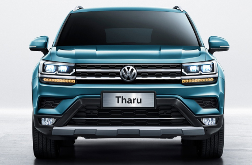 Внешностью Volkswagen Tharu выполнена в духе кроссоверов Atlas/Teramont и Tiguan. У автомобиля крупная прямоугольная LED-оптика, прямоугольная решетка радиатора, массивные бамперы и боковины. Габариты SUV`а составляют 4,45 х 1,81 х 1,62 м, а размер колесной базы равен 2,68 м.