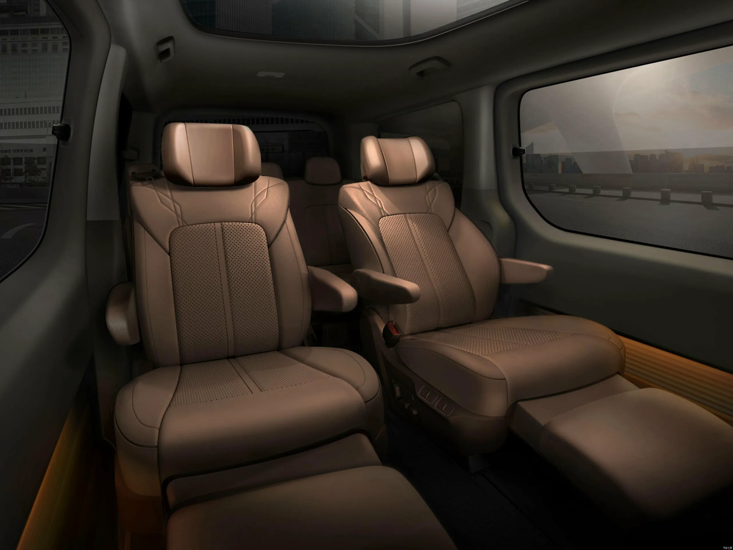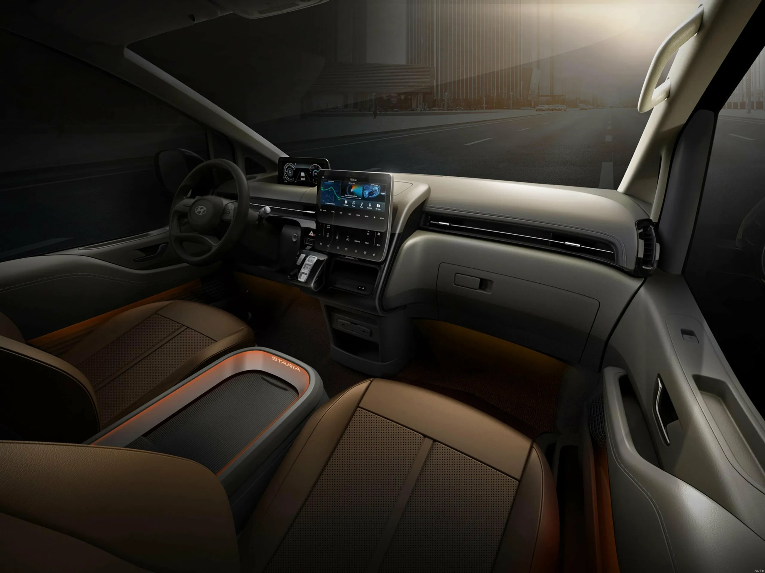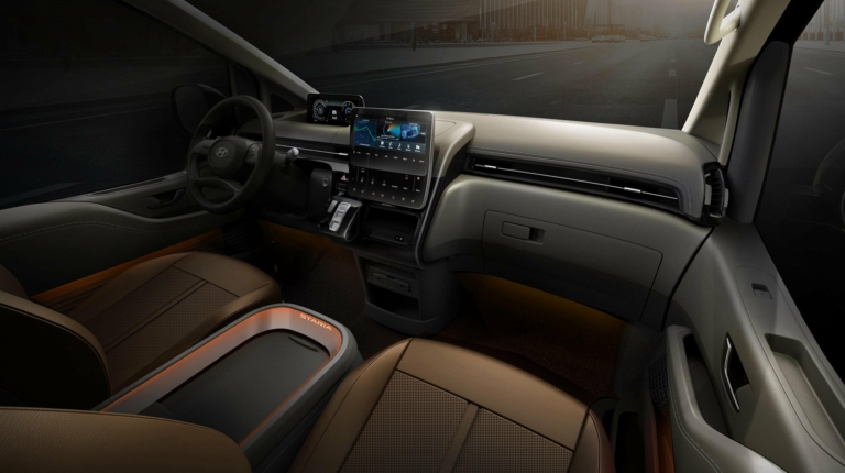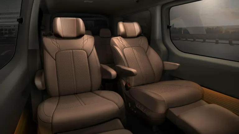 Оформлення інтер’єру в обох версіях мінімалістичне. У салоні Hyundai Staria — цифрова приладова панель і 10,25-дюймовий екран мультимедіа. Сидіння можуть бути розташовані в кількох комбінаціях, наприклад, в три або чотири ряди. У дорожчому варіанті другий і третій ряди займають капітанські крісла, що стоять окремо.
