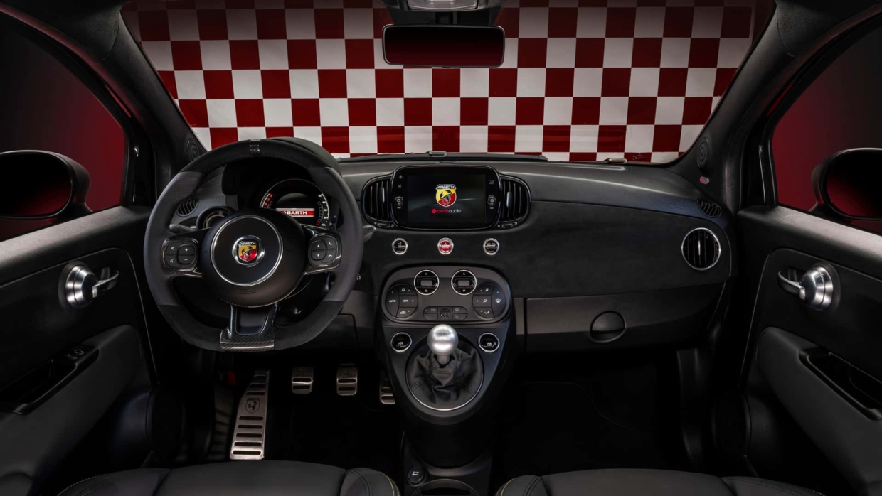 Освіжити інтер’єр 16-річного Abarth 695 спробували перешивши передню панель алькантарою. Сидіння Sabelt з карбоновою основою прикрашені жовтим декоративним рядком та вишивкою «75° Anniversario» на підголівниках. Зі зручностей в наявності пара 7,0-дюймових екранів, аудіосистема Beats та підтримка Apple CarPlay й Android Auto.