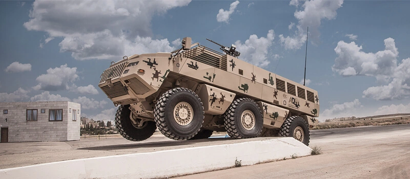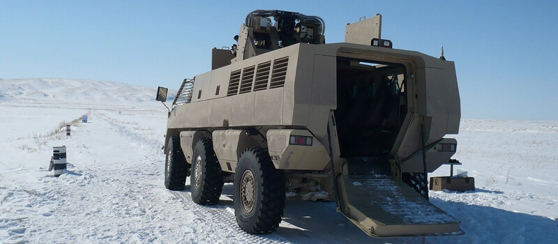 Кстати, инновационное днище V-образной формы обеспечивает небольшую габаритную высоту – около 2,4 м, что делает БТР менее заметным. Снаряженная масса составляет 17 300 кг, а максимальная боевая достигает 27 т. Машина имеет хорошую проходимость благодаря клиренсу в 430 мм и независимой подвеске.