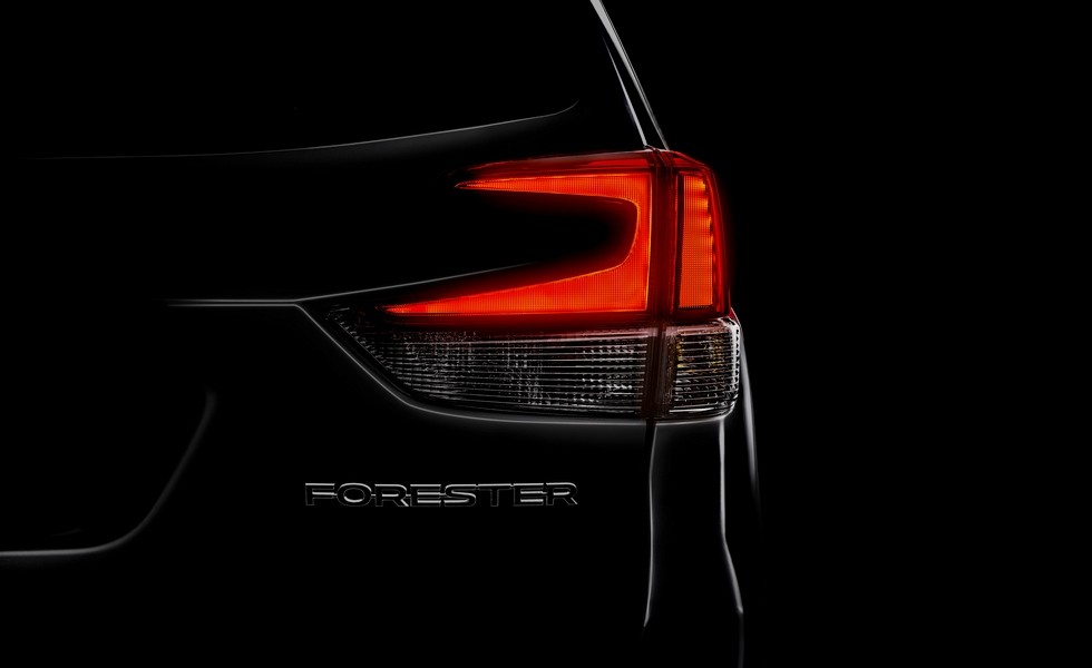 Опубликовано первое официальное изображение Subaru Forester нового поколения. Картинка частично раскрывает оформление задней части модели: как видно, машина получит С-образные фонари.