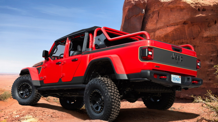 Четвертою новинкою став Red Bare, побудований на базі пікапа Jeep Gladiator Rubicon і підготовлений для суворого бездоріжжя. Він отримав посилену підвіску, нерозрізні мости Dana 44, сталеві бампери, 37-дюймові шини BFGoodrich, лебідку, знімний дах і затемнену решітку радіатора. Під капотом встановлено 3,0-літровий турбодизель V6 потужністю 260 к.с. і 599 Нм крутильного моменту, який пов’язаний з 8-ступеневою автоматичною коробкою передач.