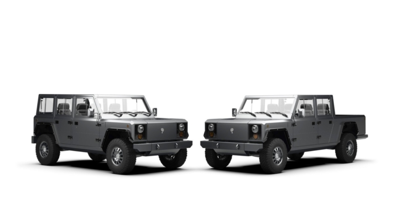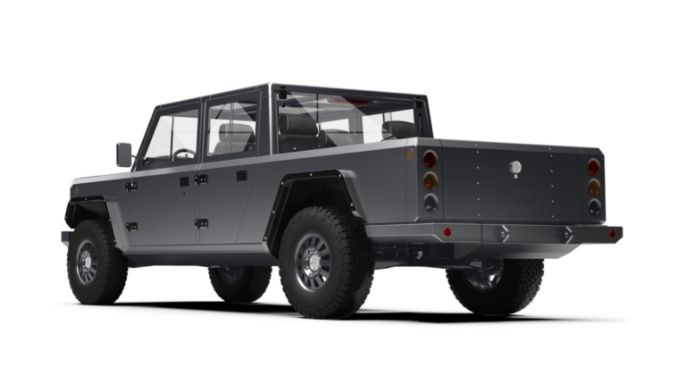 Новый Bollinger B2 является модификацией электрического внедорожника В1. Угловатый рамный авто получил грузовую платформу длиной 1,7 м и четырехдверную пятиместную кабину. Сохранен и передний багажник, причем он может соединяться с салоном и грузовым отсеком для перевозки длинномерных грузов.