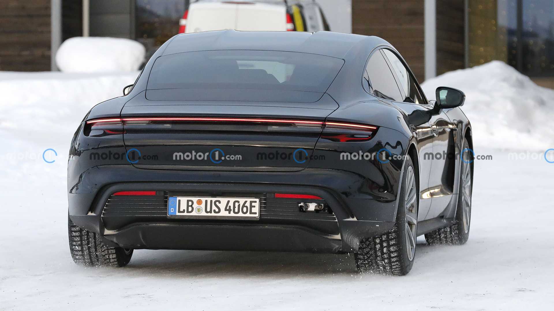 Самі фари виглядають так само, як у серійної моделі. На кормі прототипу відсутні шильдики «Porsche» та «Taycan». Задній бампер та ліхтарі не змінилися. Але у серійного автомобіля вони можуть виглядати інакше, оскільки на тести, ймовірно, вивели ранню версію оновленого Taycan.